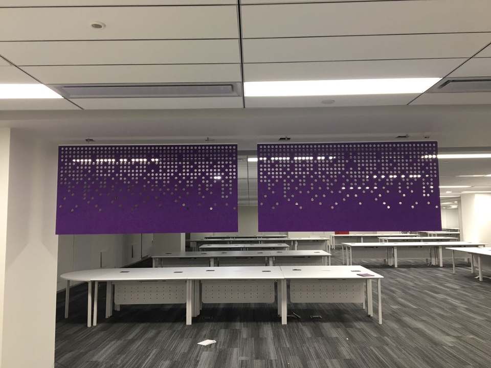 Panneaux acoustiques en feutre de qualité supérieure pour l'exportation avec solutions de design graphique, marque TRANQUIL ECOCORE, garantie de 2 ans