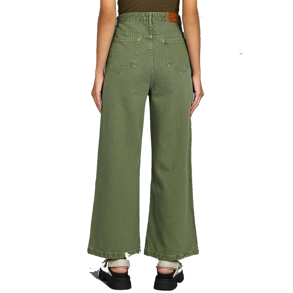 Orienté vers l'exportation personnalisé à la mode jambe large fermeture éclair braguette taille haute cheville longueur couleur unie lâche femmes jeans pantalon de BD