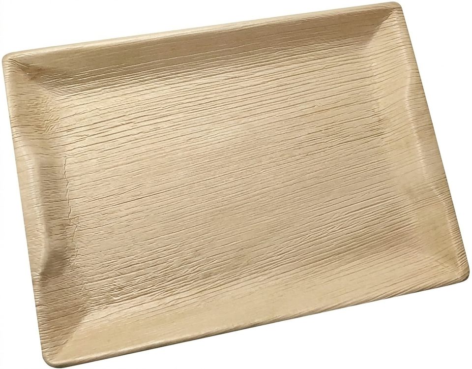 Plateau carré jetable en feuille de palmier Areca de qualité export, 14x10 pouces, pour la restauration et les événements, biodégradable, 2026