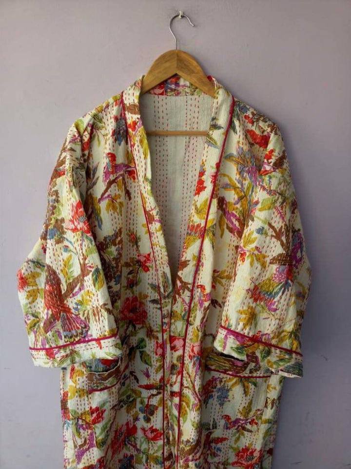 Fait à la main indien Floral Kantha femmes 100% coton Kimono Robe parole longueur lavable naturel avec approvisionnement en gros qualité d'exportation