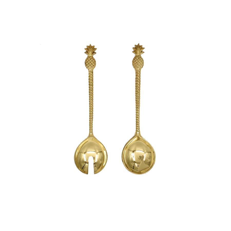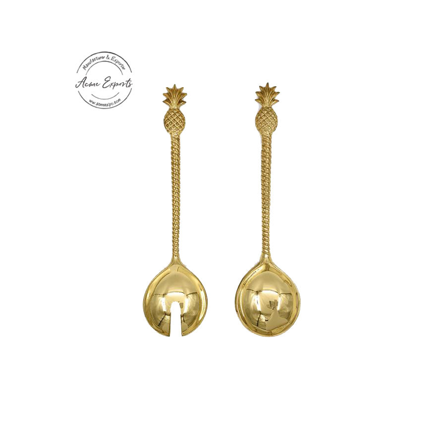 Ensemble de service à salade en laiton avec poignée d'ananas élégant avec finition dorée idéal pour cadeau de décoration de salle à manger et cadre de table élégant