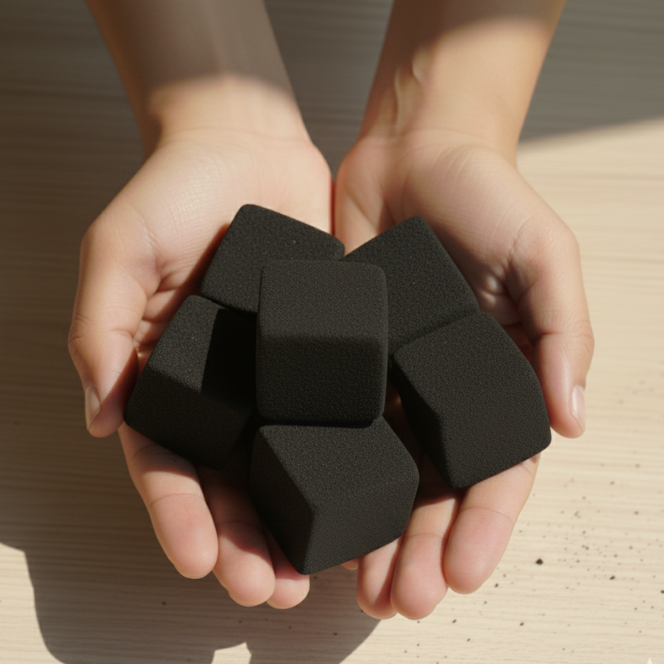 Briquettes de charbon de bois de coque de noix de coco de qualité d'exportation, cubes | Haute teneur en carbone, faible teneur en cendres | Grade Chicha