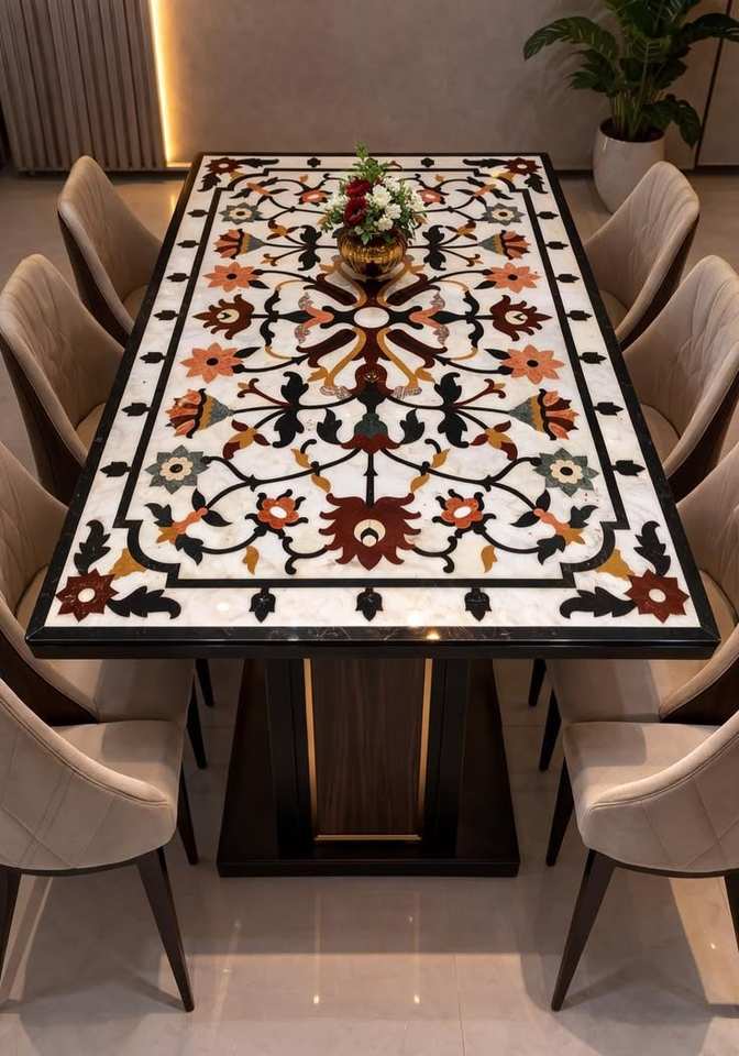 Îlot lumineux contemporain de qualité export avec incrustation de marbre et plan de travail en résine pour projets hôteliers et villas – Plateau de vanité