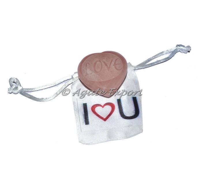 Pierre semi-précieuse de cœur en quartz rose en relief pour la guérison efficace avec pochette d'amour Pierre de cristal de guérison artisanale
