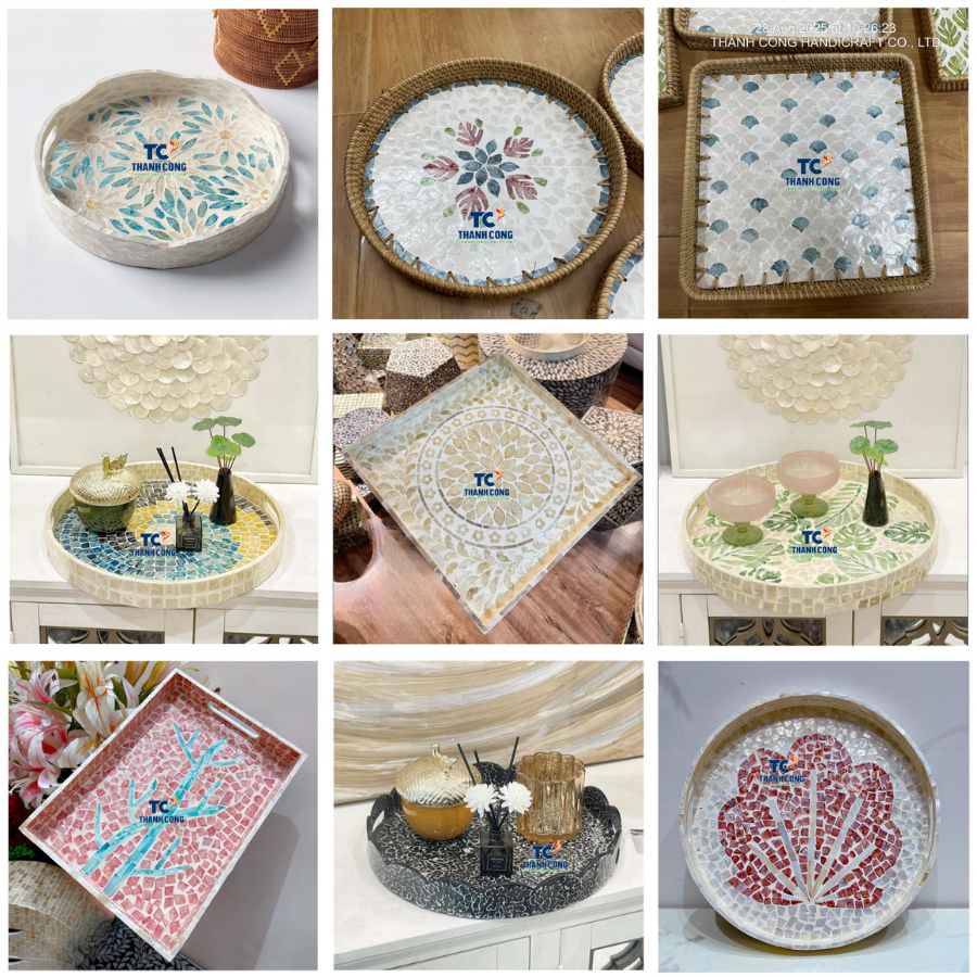 Plateau en nacre de qualité export, finition mosaïque décorative, plateau en mosaïque de nacre, Vietnam