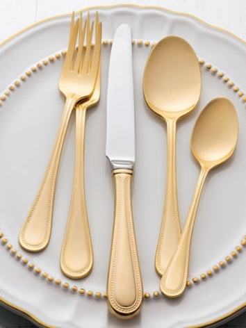 Ensemble de couverts en or de qualité export, vaisselle haut de gamme pour la restauration, fournisseur pour hôtels