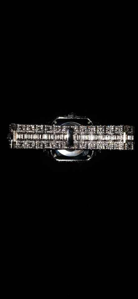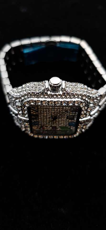 Qualité d'exportation Montre de luxe en or blanc glacé Chiffres romains Diamant naturel Pavé Visage multicolore Bracelet en acier inoxydable
