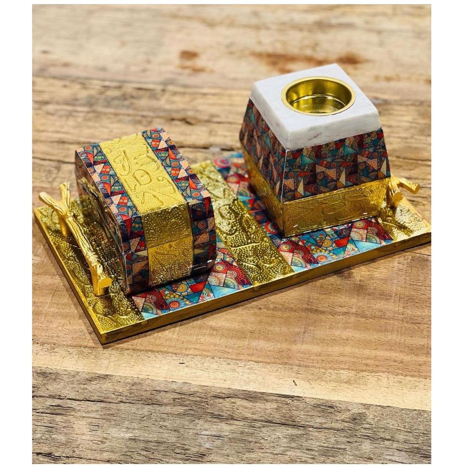 Ensemble de brûleurs Mubkhar en résine émaillée portable moderne de qualité exportatrice couvercle élégant et durable charbon de bois Oud écologique pour parfum d'intérieur