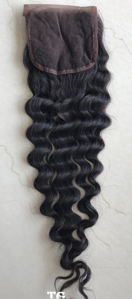 Nom du produit:Fournisseurs péruviens d'extensions de cheveux humains avec fermeture profonde en dentelle foncée 4x4