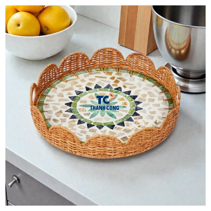 Fournisseur d'exportation de plateaux en nacre, design artisanal en coquillage, plateau en coquille de nacre, Vietnam