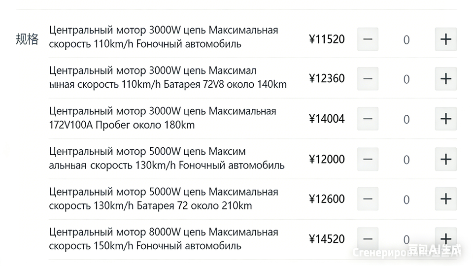 Specifications:Mid-mounted motor 3000W chain, top speed 110kmh, b