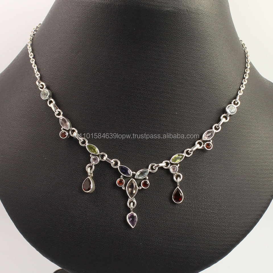 Exportateur! Collier en argent Sterling 925 naturel pour femme, bijoux tendance, pierres précieuses multicolores, offre spéciale