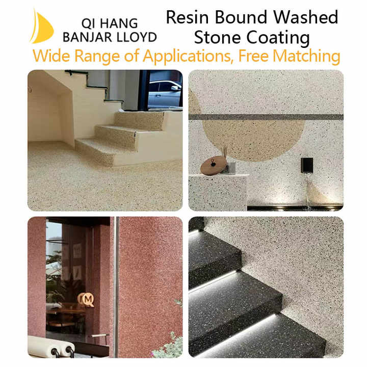 Revêtement de sol en résine époxy à granulats apparents, galets colorés, pierres lavées à l'eau, pavage de cour, gravier arrondi, roches