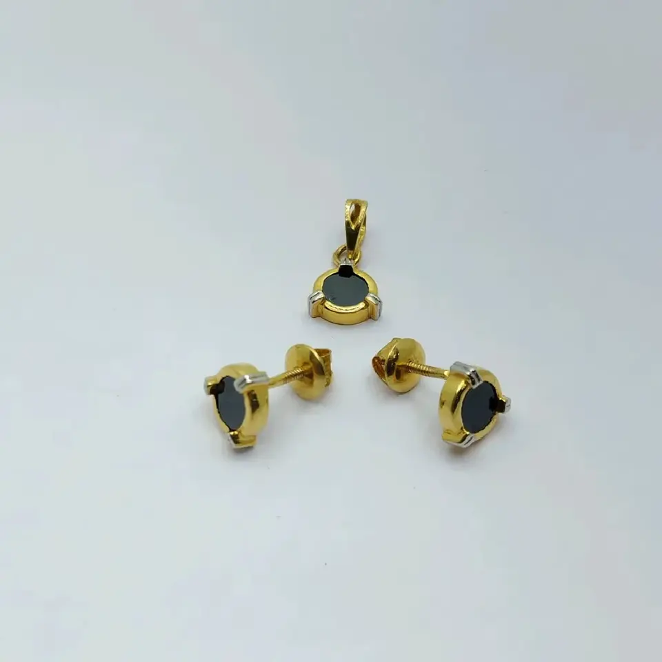 Ensemble de bijoux exquis plaqué or 22 carats pour femmes, comprenant des boucles d'oreilles rondes en onyx noir poli et un pendentif solitaire assorti