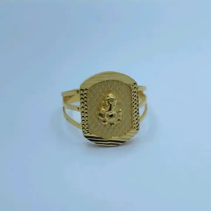 Bague de déclaration traditionnelle en or 22 carats pour femme, avec motif Lord Ganesha en relief sur un fond texturé soleil éclatant