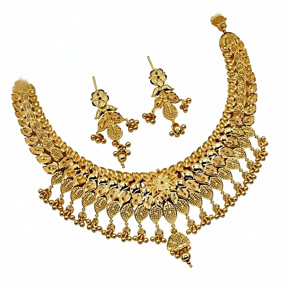 Exquisite 22k Solid Gold Wedding Necklace Set Matching Earrings Traditional Indian Bridal Jewelry Handcrafted Fine Gold Choker