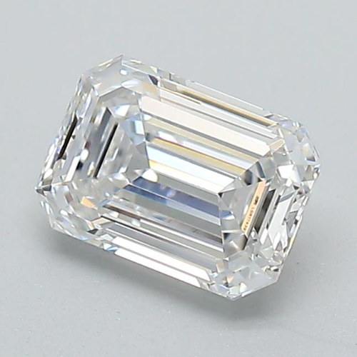 Diamant blanc de 3 carats, couleur E, pureté VS1, taille émeraude, exquis, mettant en valeur une symétrie de coupe dégradée impeccable et un éclat glacé d'élite.