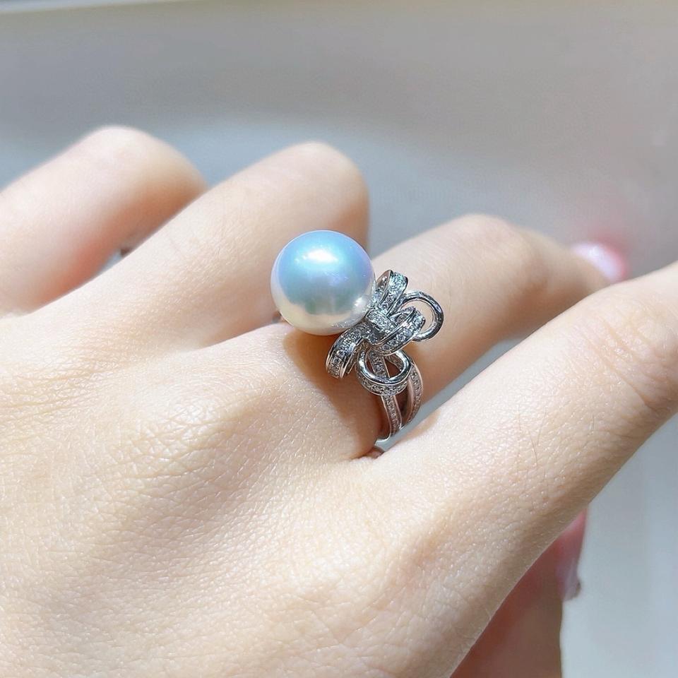 Bracelet en argent 925 plaqué or avec perle Edison et anneau à nœud en ruban 10-11 mm avec un sens du design