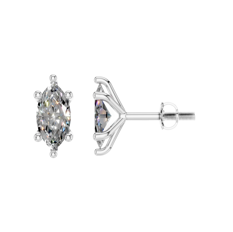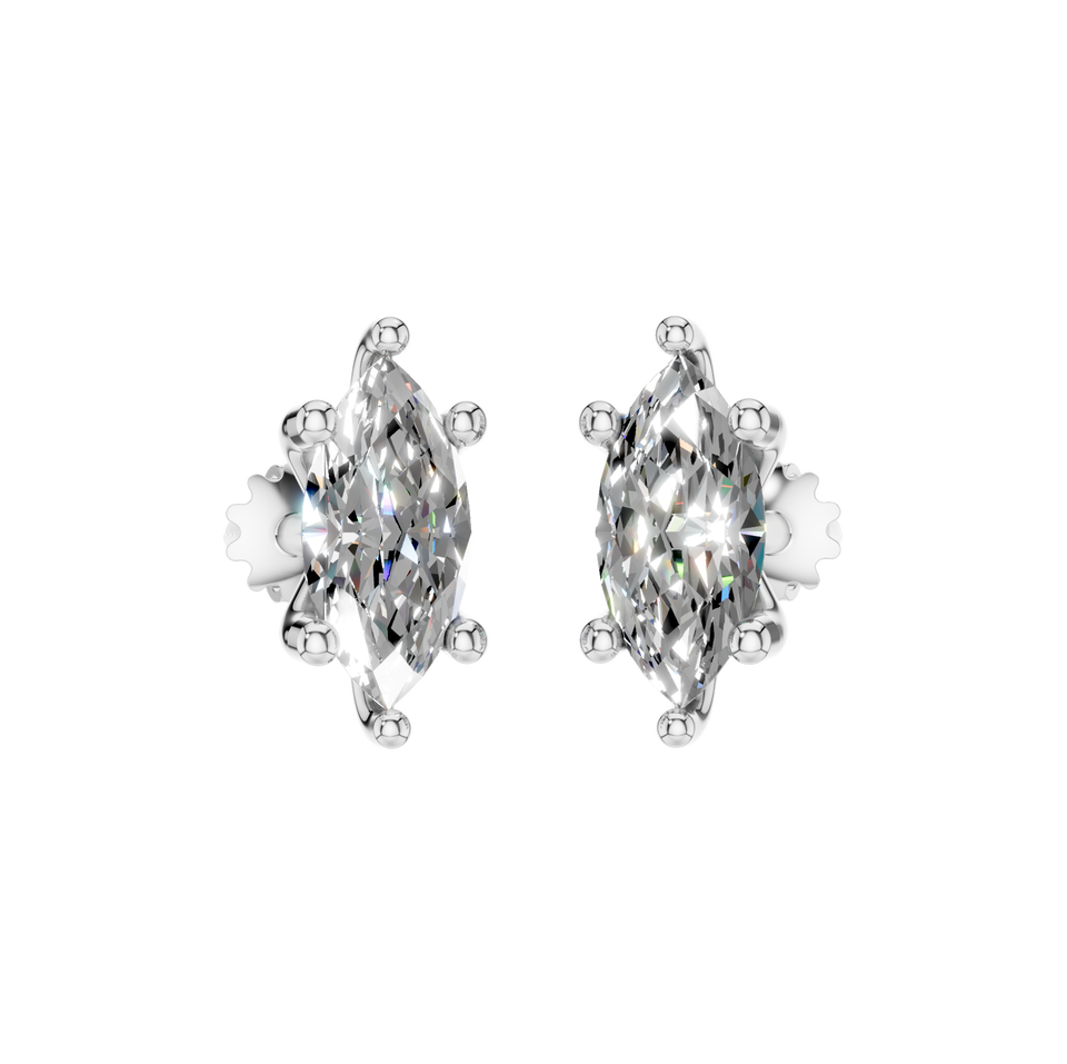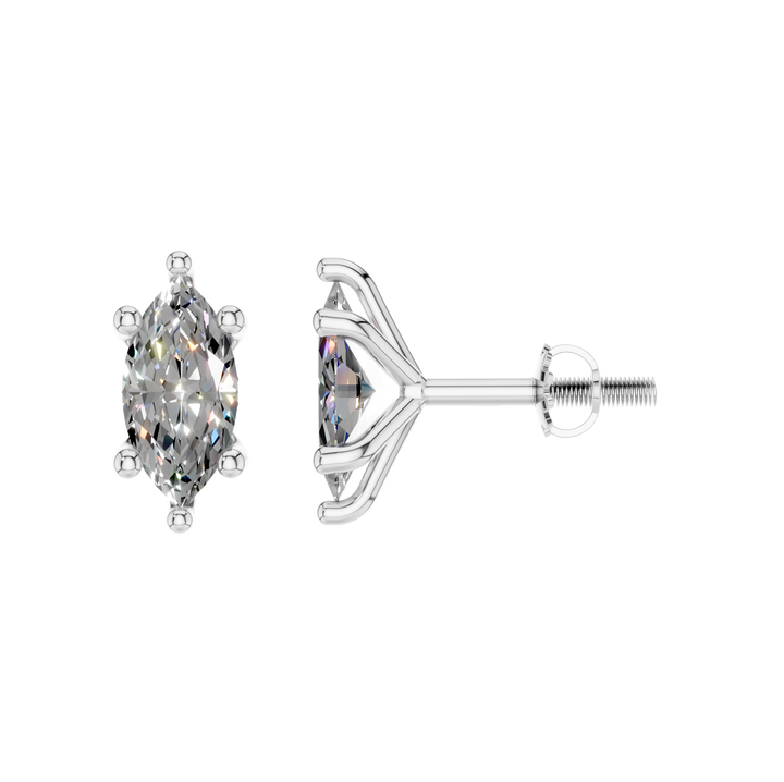 Boucles d'oreilles clous en platine 950 avec diamant de laboratoire taille marquise, certifiées IGI, design de bijoux fins, fabrication artisanale, brillance exceptionnelle