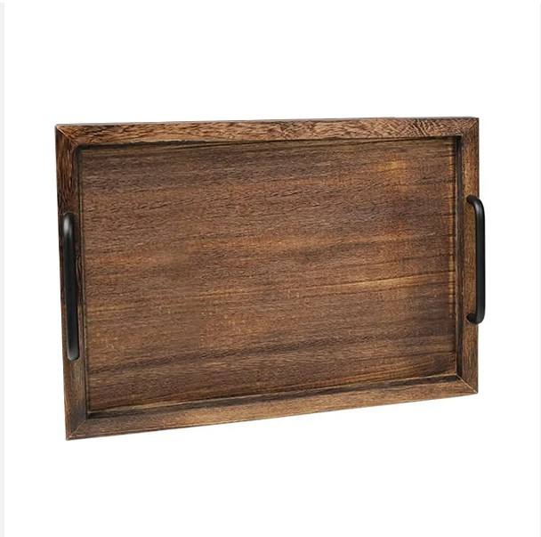 Plateau de service en bois d'acacia exquis poignée pratique plateau en bois carré pour la nourriture à la maison plateaux décoratifs de table en bois massif
