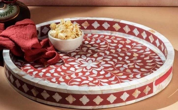 APEX ALIGN Assiette de service en incrustation d'os exquise Artisanat détaillé fait à la main Couleur/Logo/Emballage personnalisable pour une utilisation à domicile dans un hôtel