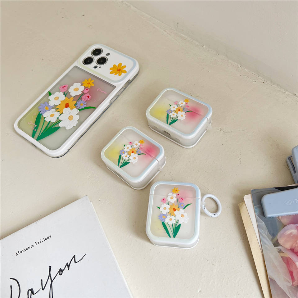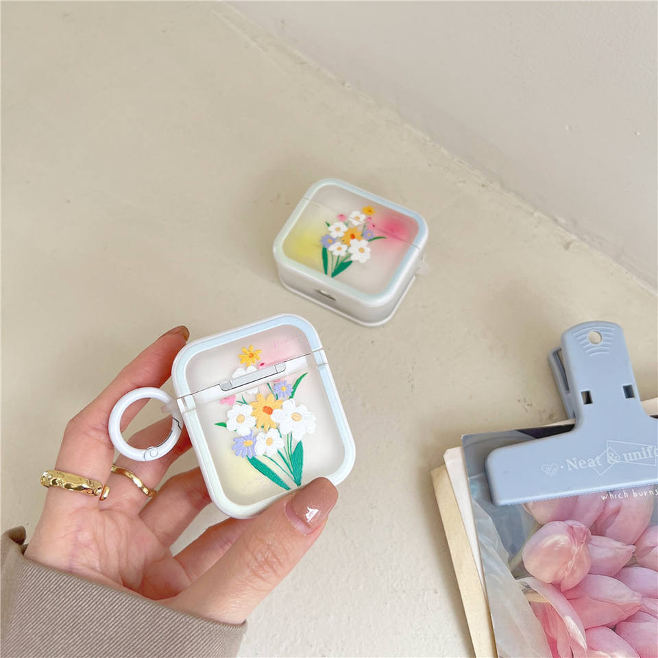 Étui de protection mat en TPU pour écouteurs sans fil Apple AirPods 1 2 4, protection intégrale 2-en-1, motif bouquet exquis