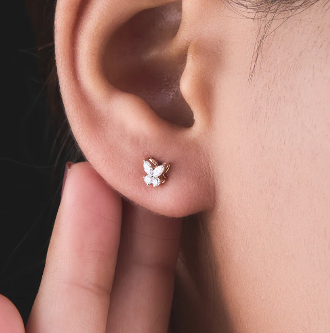 Boucles d'oreilles papillon exquises avec des accents de diamant bijoux brillants pour un usage quotidien et des fêtes d'Inde