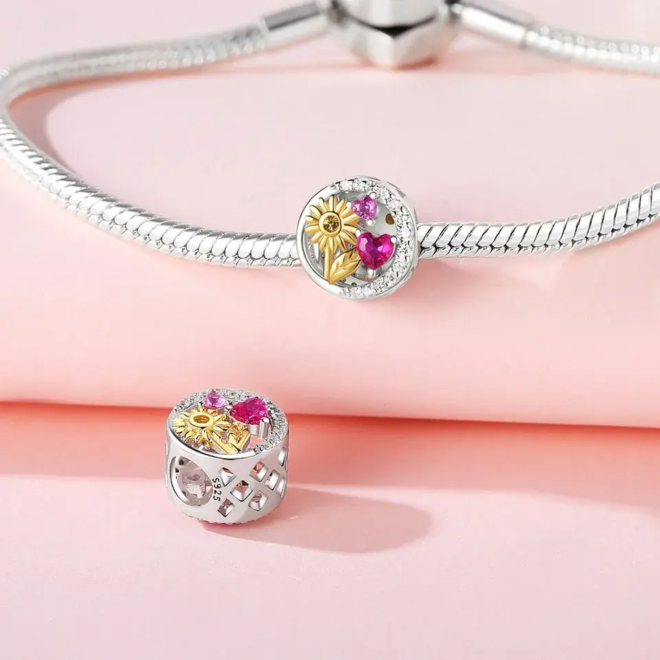 Pendentif DIY Exquis et Charmant pour Enfants, Motifs Floraux Romantiques : Rose, Fleur de Cerisier, Cactus, Zircon, en Argent et Plaqué Or Rose