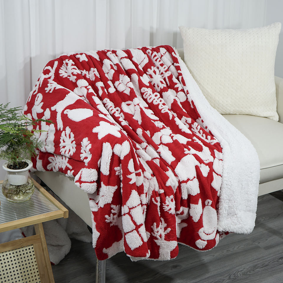 Plaid en polaire ultra doux motif renne de Noël, avec envers en sherpa chaud et confortable pour canapé, lit, décoration festive de la maison