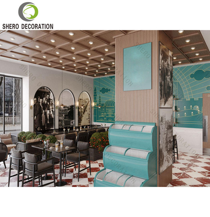 Design d'intérieur exquis pour les cafés, comptoir de bar en marbre personnalisé de luxe, idées de décoration de magasin moderne