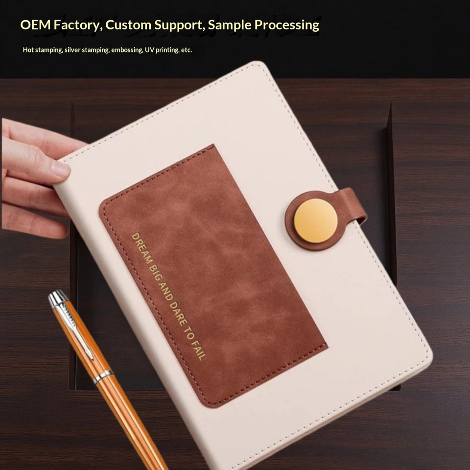 Carnet de notes A5 en cuir PU avec blocs de couleur exquis, fermeture magnétique, agenda, logo personnalisé, couverture rigide, poche pour cartes