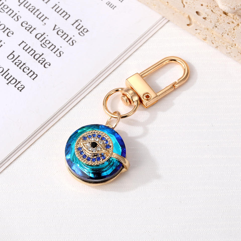 Porte-clés œil de démon en cristal bleu éblouissant exquis, décoration de sac personnalisée haut de gamme, pendentif en métal élégant et tendance