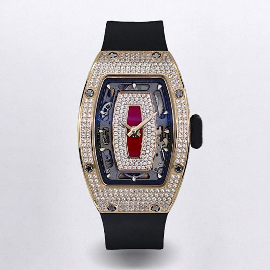 Montre de Luxe Exquise à Boîtier Diamanté, Cadran Onyx Rouge, Index Lumineux, Vis en Titane – Idéale pour les Occasions d'Élite sur le Tapis Rouge