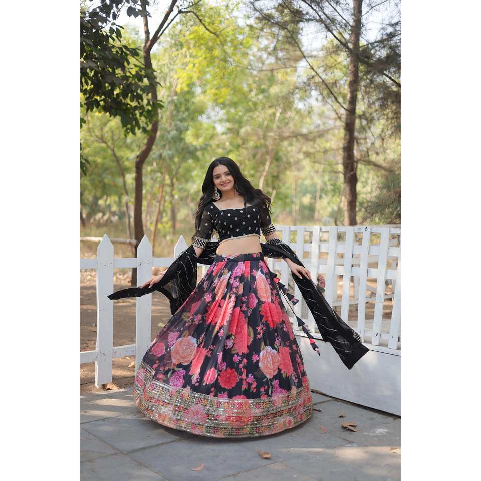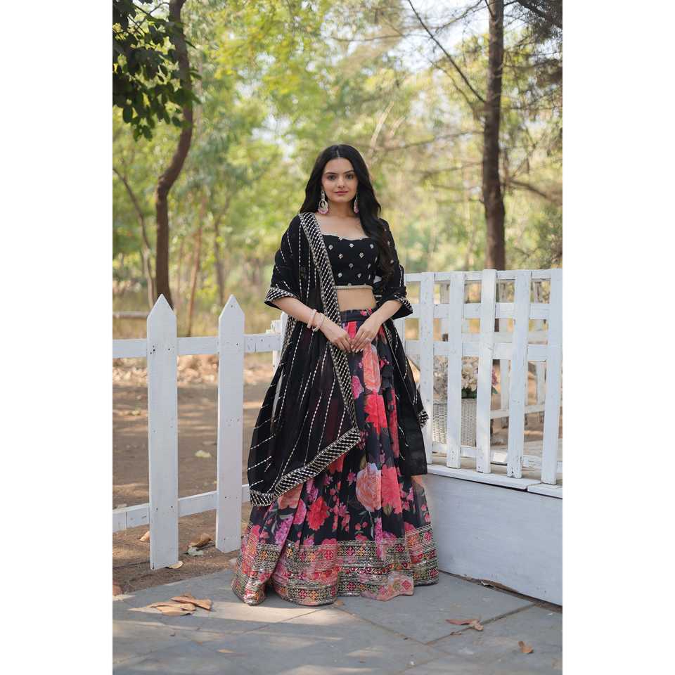 Faux Georgette Lehenga imprimé numérique exquis avec fil à paillettes lourd brodé travail vêtements indiens et pakistanais