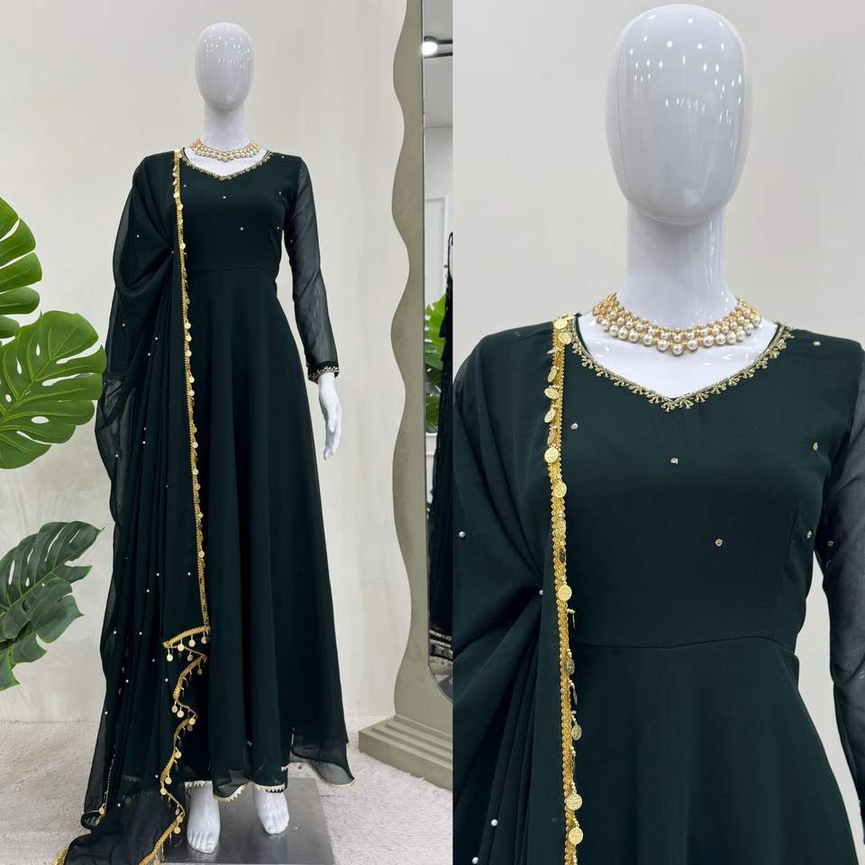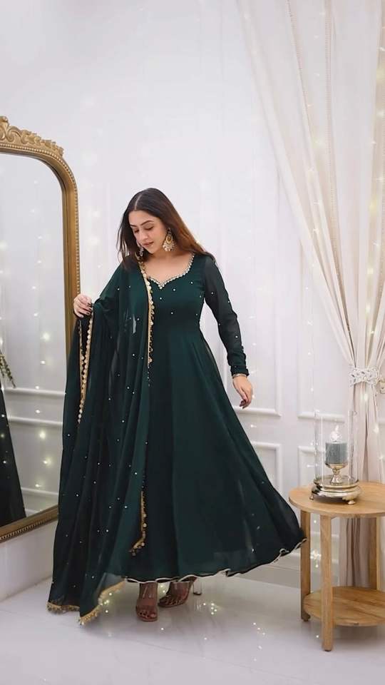 Ensemble ethnique exquis en Foux Georgette Top présentant une bordure en dentelle de travail manuel complexe M XL XXL avec 3XL en gros et pas cher
