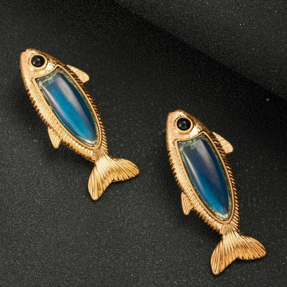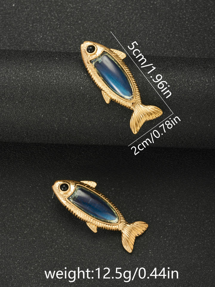 Boucles d'oreilles exquises à la mode rétro bleu petit Crucian carpe océan élément pour les femmes