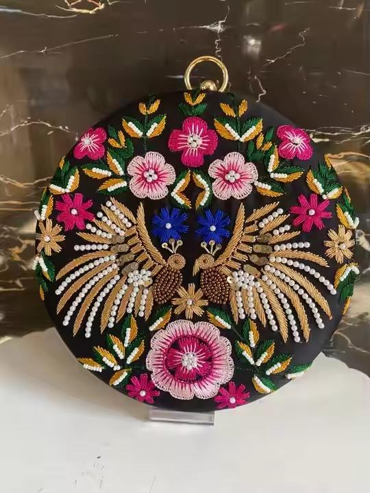 Exquisite Fashionable Round Shape Handmade Clutch Luxury Embroidered Evening Purse for Elite Weddings