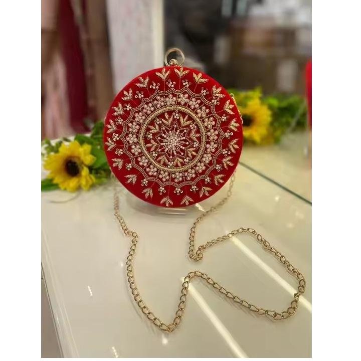 Sac à main brodé de luxe fait main de forme ronde à la mode exquise pour les mariages d'élite