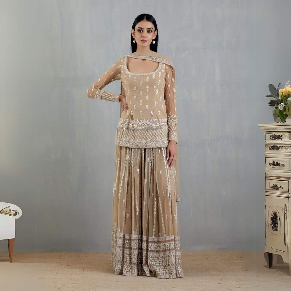 Exquis Foux Gorgette Set Premium Top avec Micro Inner & Precision Thread Sequnce Work Disponible en M XL XXL avec Marge 3XL