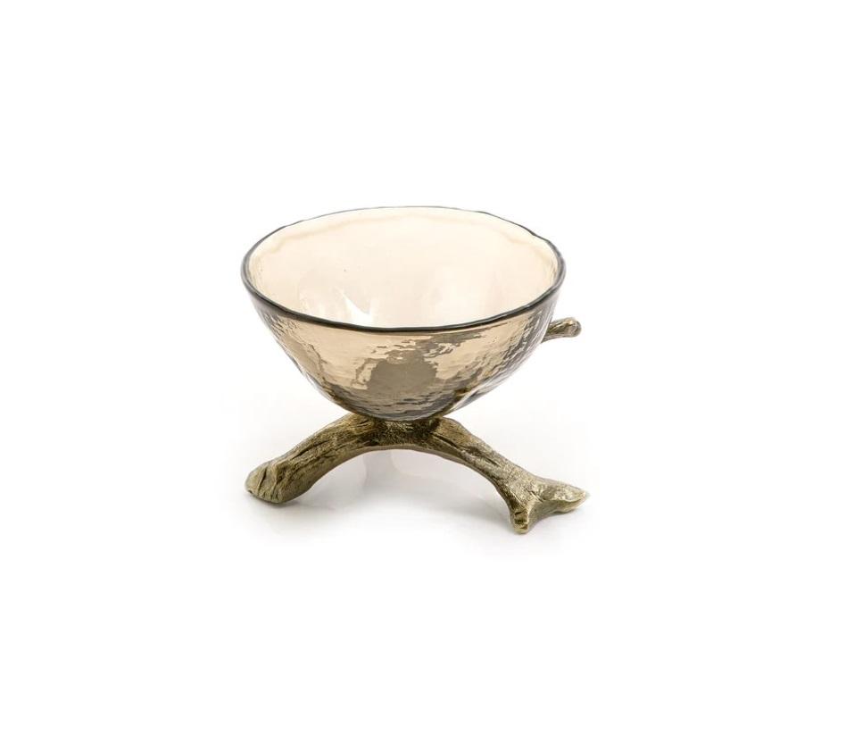 Bol décoratif doré exquis en verre et en métal Accent de table de luxe de qualité supérieure Affichage de décor à la maison élégant