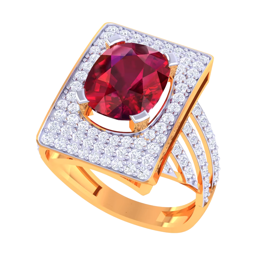 Bague en or et rubis exquise, design géométrique rectangulaire avec halo, bijoux de mode pour mariage et soirée pour femmes