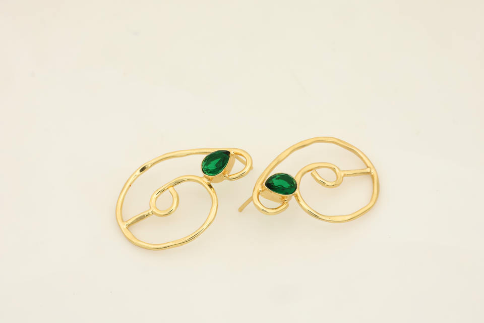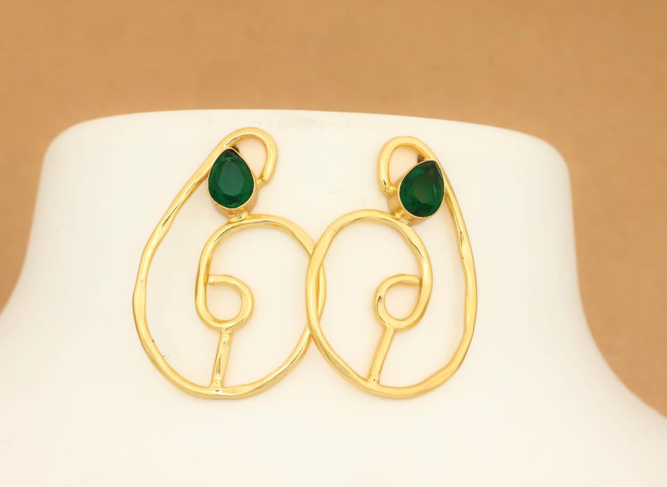 Exquis fabriqués à la main abstraite Teardrop-Cut Emerald Green Gemstones Artistic Swirl Design Statement Jewelry for Modern Elegance