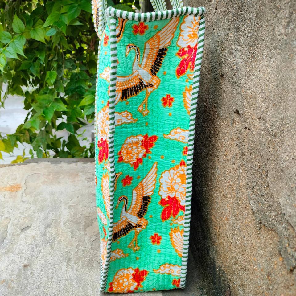 Sac fourre-tout matelassé en coton fait main avec fermeture éclair, style Kantha, sac à bandoulière bohème pour le shopping