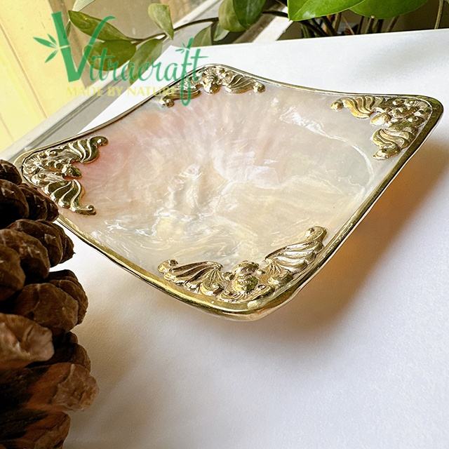 Exquisite Handcrafted Plates Made From Mother of Pearl Mixed with Gold-plated Copper Unique and Meaningful Gift Size 10-11cm