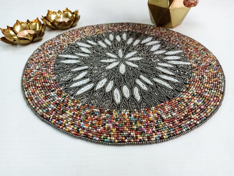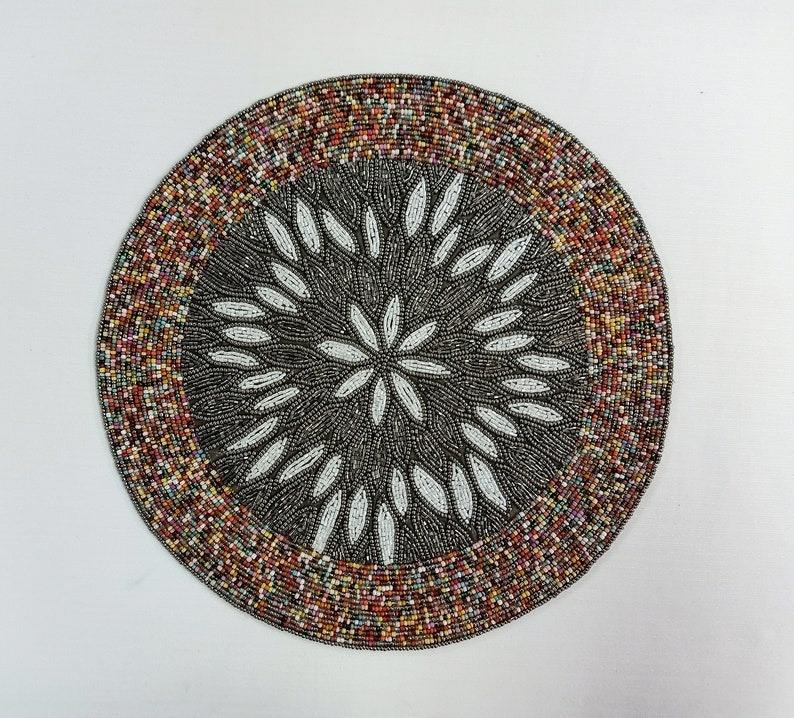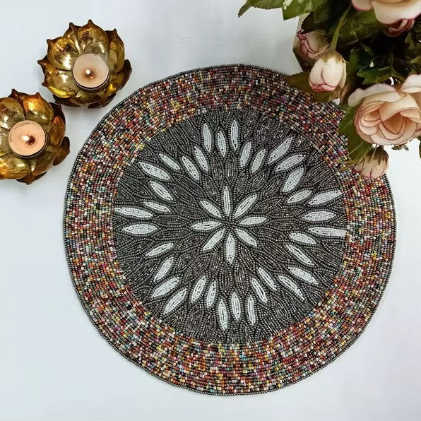 Exquisite Handmade Beaded Flower Placemat Featuring Vintage-Inspired Orange White & Brown Petals Decorative Centerpiece tableMat