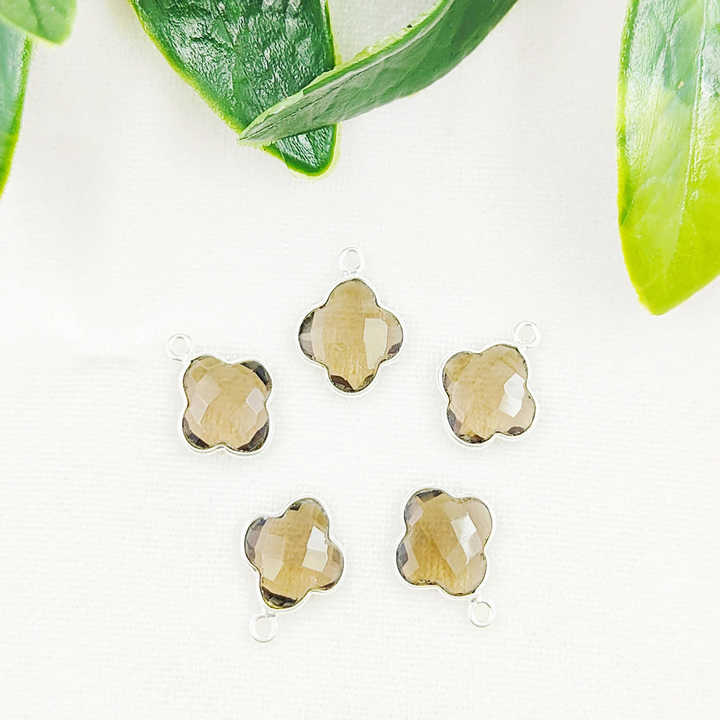 Pendentif exquis en quartz fumé briolette trèfle fait à la main en argent sterling 925 avec finition vermeil en or