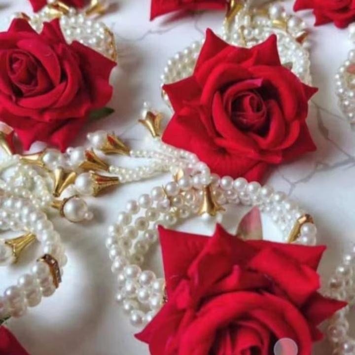 Ensemble de bijoux floraux exquis faits à la main en velours rouge et perles blanches pour femmes et filles, bracelets de mariée en fleurs artificielles