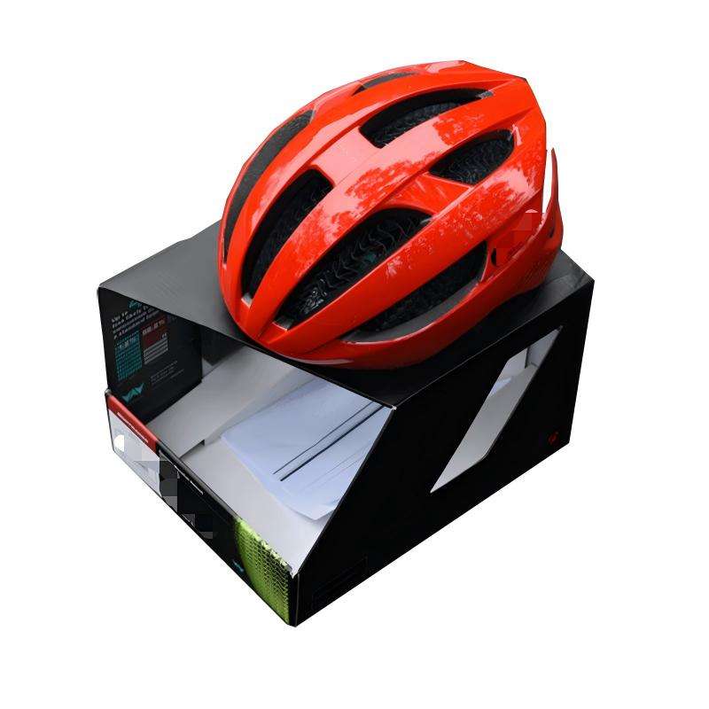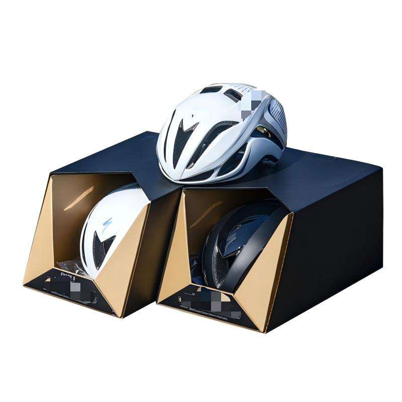 Emballage de casque exquis, boîtes à chapeaux personnalisables, boîtes à casque en carton ondulé, emballage de casque de vélo, portable et pliable.