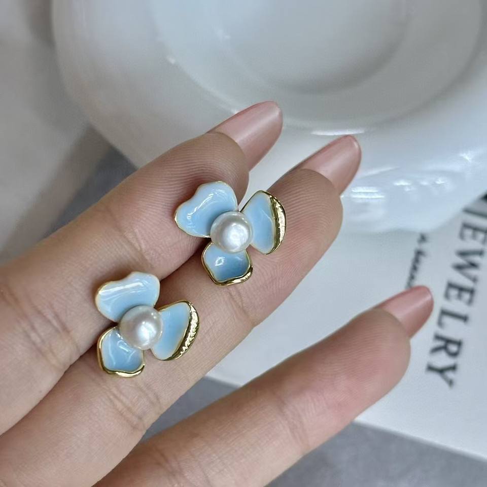 Boucles d'oreilles exquises en perles d'eau douce haut de gamme, argent sterling bleu, motifs floraux élégants, explosion florale bleue naturelle et élégante