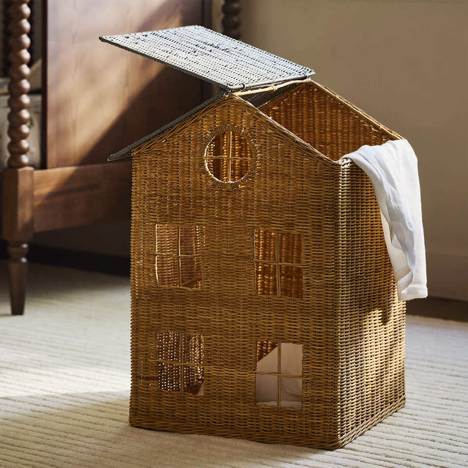 Panier à jouets en osier en forme de maison exquise, panier de rangement en rotin naturel, panier décoratif, décoration fantaisie pour chambre d'enfant